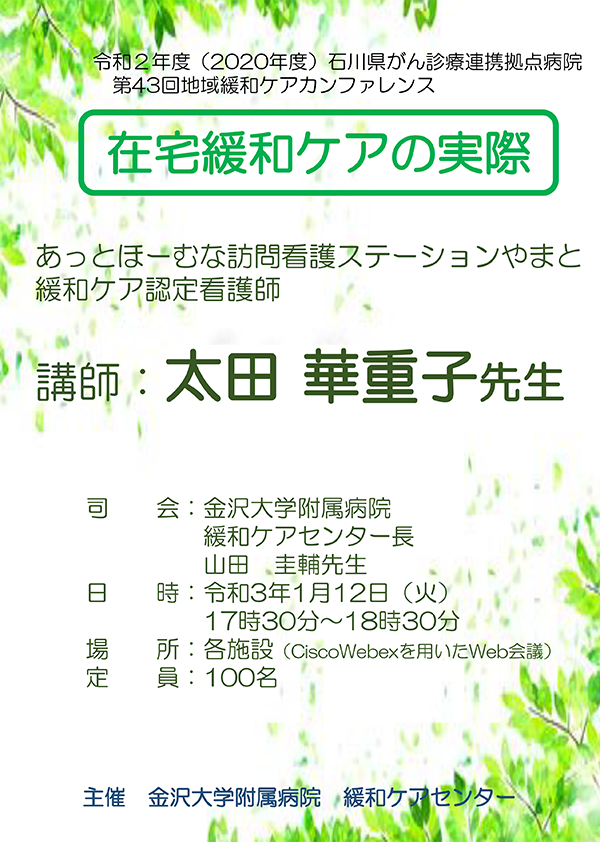 令和2年度石川県がん診療連携拠点病院 第43回地域緩和ケアカンファレンス
