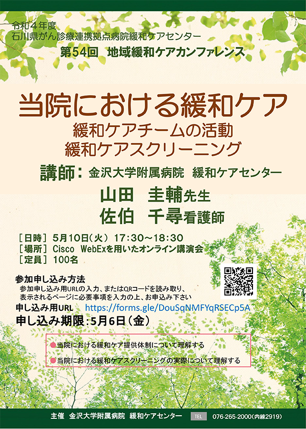 主催 金沢大学附属病院 緩和ケアセンター