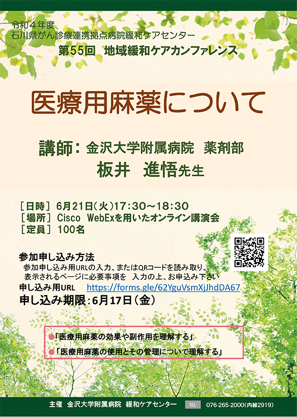 主催 金沢大学附属病院 緩和ケアセンター