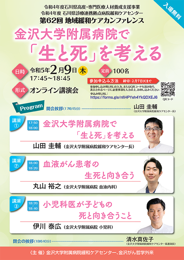 演題名:金沢大学附属病院で「生と死」を考える
