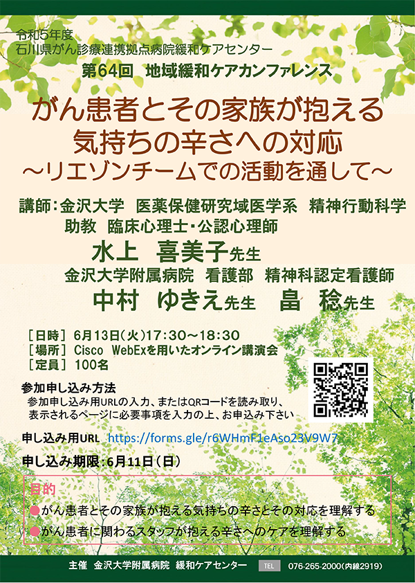 主催 金沢大学附属病院 緩和ケアセンター