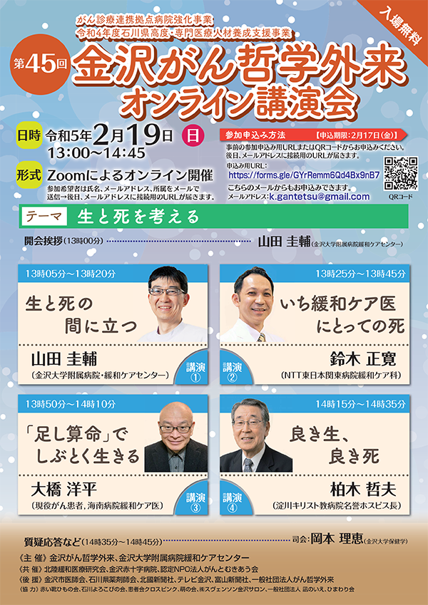 2023/2/19開催 第45回 金沢がん哲学外来オンライン講演会
