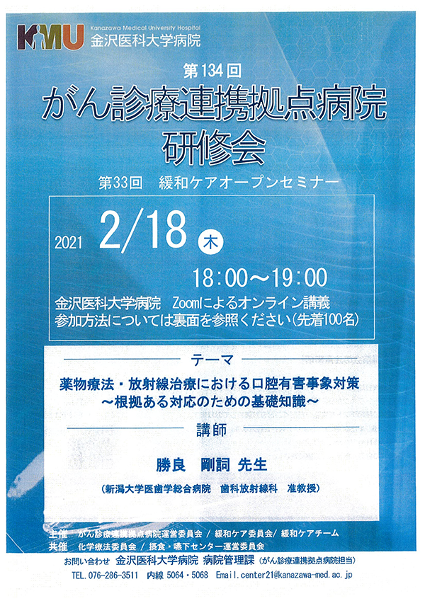 2021/2/18開催 金沢医科大学病院主催 第134回 がん診療連携拠点病院(第33回緩和ケアオープンセミナー)