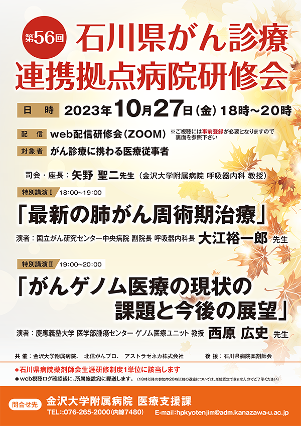 2023/10/27開催 第56回 石川県がん診療連携拠点病院研修会
